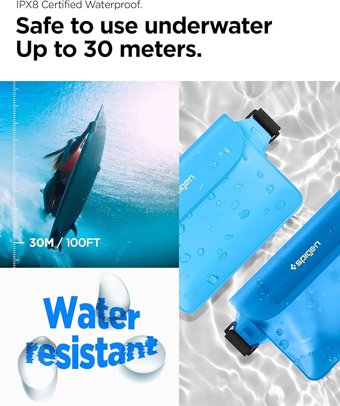 Spigen AquaShield A620 Waterproof Cell Phone Bag, Dry Bag, Fanny Pack with Adjustable Waist Strap for Beach, Swimming, Boating, Fishing, Hiking, etc
