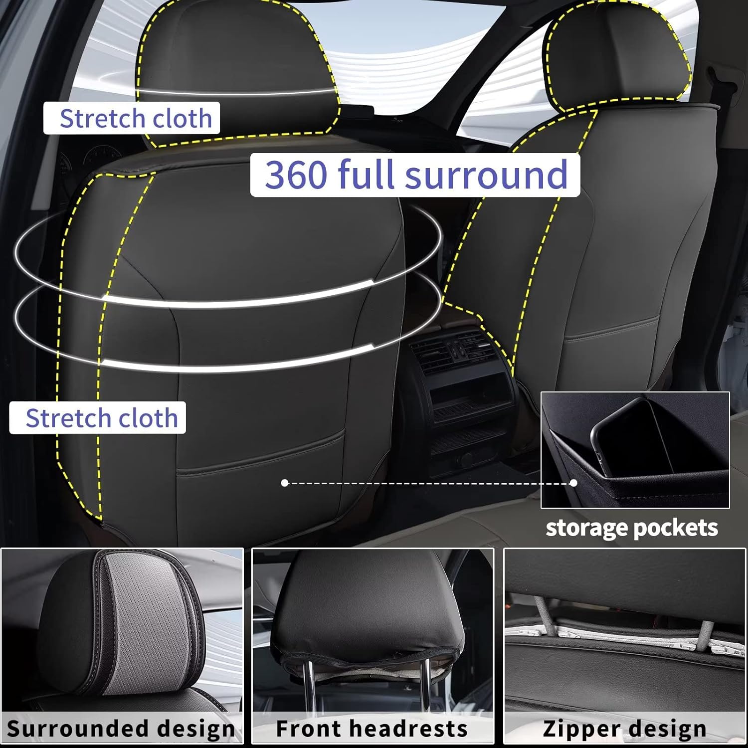 - 🚙【HIGH-QUALITY MATERIAL】:Surface material made of high quality faux leather, soft, durable and waterproof. The delicacy perforations bring breathable comfort experience.The middle part use high rebound sponge,create top resilience for maximum comfort during your drive. Non-slip fabric is used on the bottom layer,keep the covers in place .