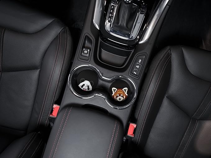 WIRESTER, Baby Panda Bear, Red Panda Design Absorbent ROUND Fabric Felt Neoprene Car Coasters for Drinks (2.87 inches), 2pcs Set