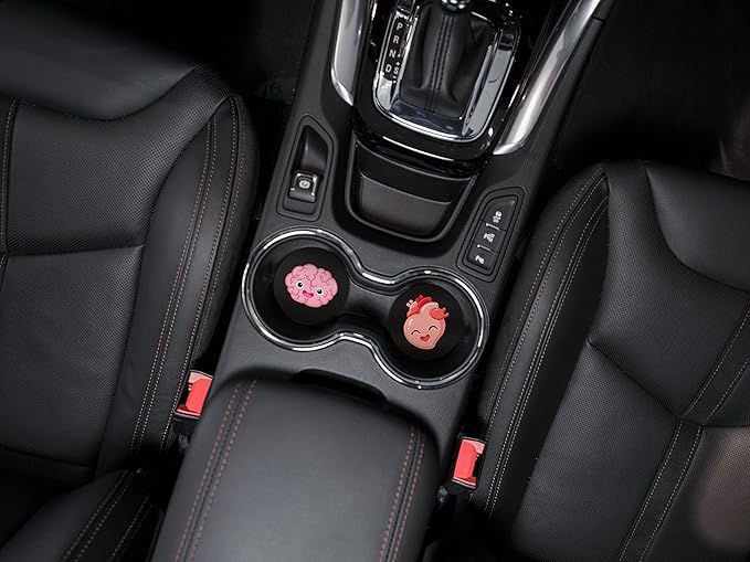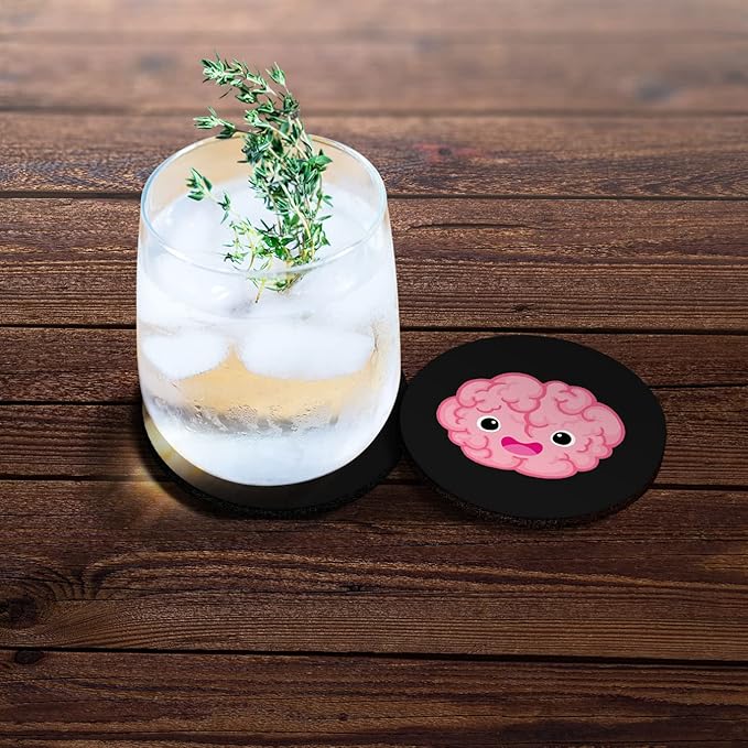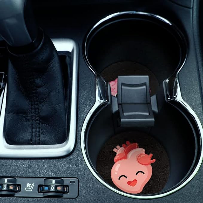 WIRESTER, Cute Brain, Pink Heart Design Absorbent ROUND Fabric Felt Neoprene Car Coasters for Drinks (2.87 inches), 2pcs Set