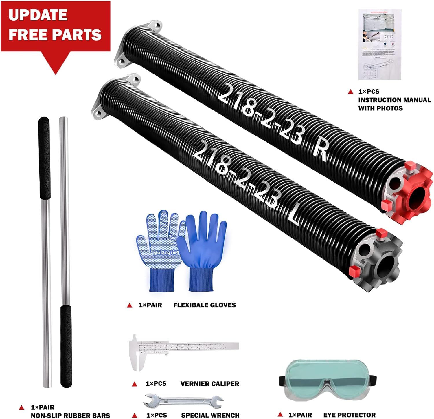 - EXTRA FREE PARTS : A pair of Garage Door Torsion Spring, A pair of 17.2’’ Non-Slip Winding Bars and Gloves/Eye protector/Professional wrench/Mini plastic Vernier Caliper, and Installation Instructions are included in the package, with the professional tools DIY is much easy to learn installing after receiving the product.