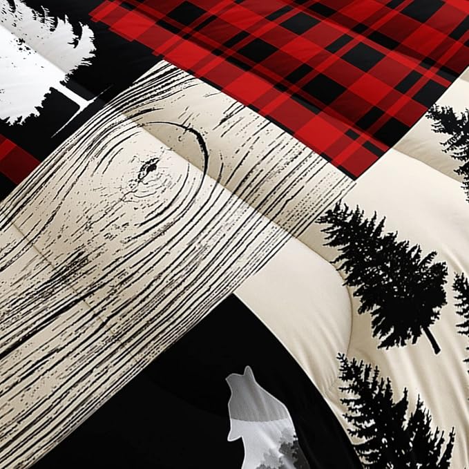 Wild Camp Kids Comforter Bedding Set for Boys Girls,Tree Bear Print and Wooden Pattern Collage Comforter with 2 Pillowcases(Wild Camp Full)