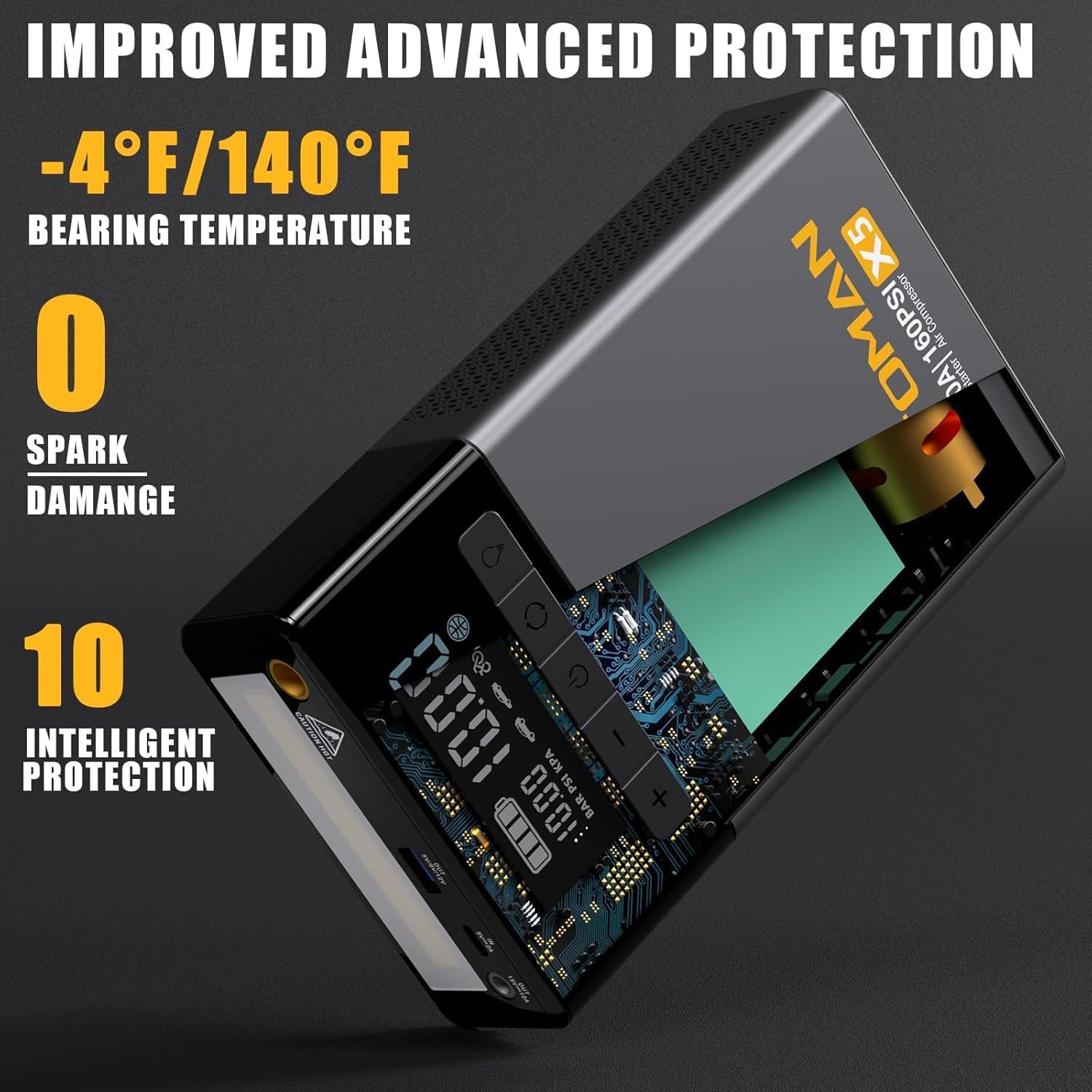 - Upgraded Thermal Design - The X5 battery booster pack features an upgraded thermal design that ensures cool operation even during prolonged use. This advanced design prevents overheating, ensuring optimal performance and durability over the long term, even in extreme weather(-4℉ to 140℉).