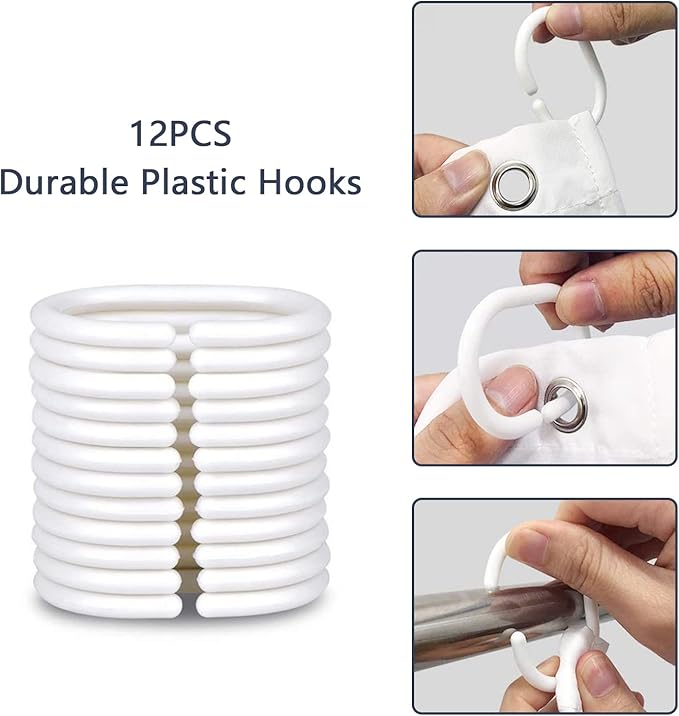 - ★MATERIAL: 100% polyester fabric, water proof. Not see-through, protect your privacy always. Includes 12 plastic curtain hooks.