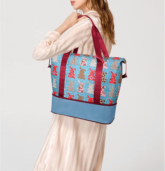 Womens Travel Duffel Bag Lightweight Sport Gym Bag Waterproof Weekender Overnight Bag with Wet and Dry Separation Pocket for Gym Training Yoga Fitness Swimming