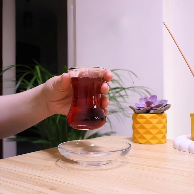 - Classic desing | The Turkish glass saucer set is crafted from high-quality glass material, which is durable and easy to clean. It is designed to last for a long time. Saucer plates fit under salad plates, small soup bowls and main course dinner plates to prevent your table from spilling.