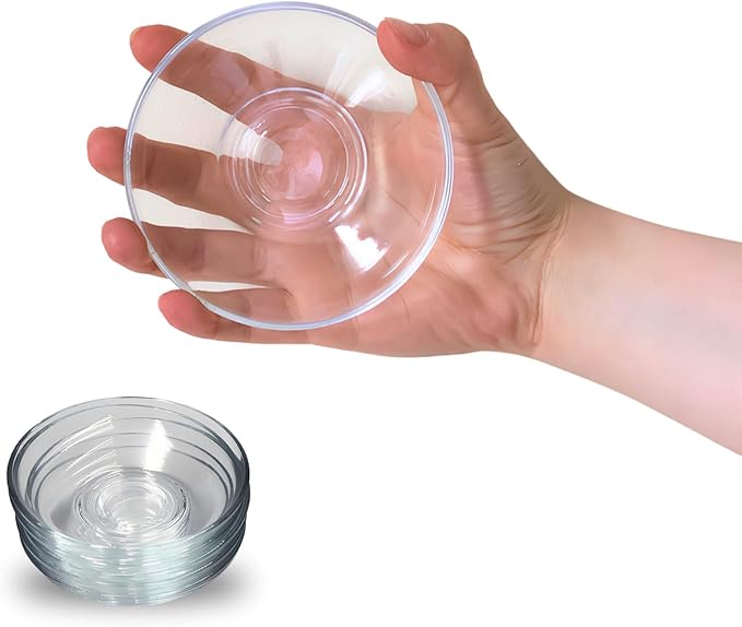 - What you get | Our set includes 6 glass saucers. It’s a high-quality product that is worth the money. Measures about 4 inches.