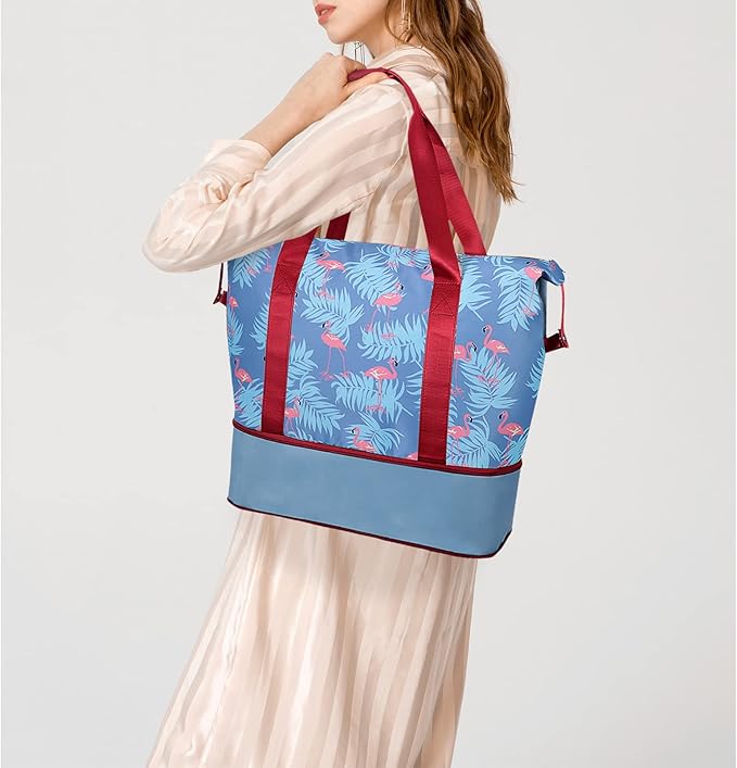 Womens Travel Duffel Bag Lightweight Sport Gym Bag Waterproof Weekender Overnight Bag with Wet and Dry Separation Pocket for Gym Training Yoga Fitness Swimming