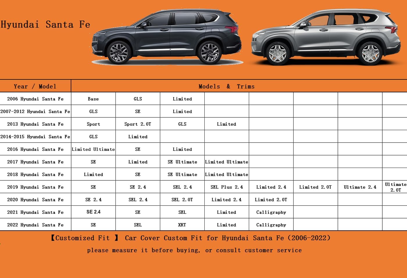- 【Suitable for】— Custom fit for Hyundai Santa Fe (2006-2025). Come with a large enough portable bag to store your cover when you do not use