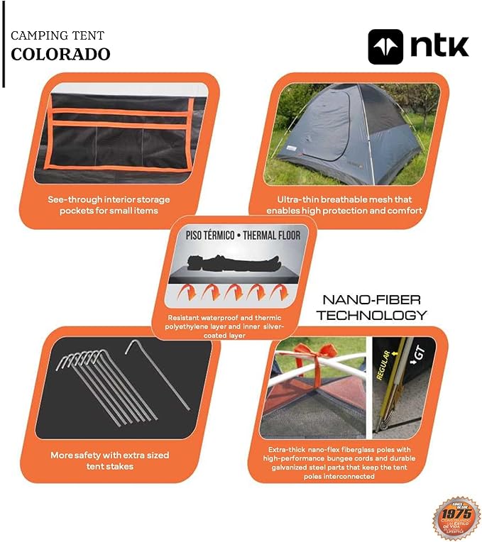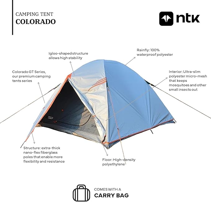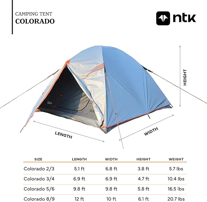 NTK Colorado GT 2/4/6/8 Person Outdoor Dome Family Camping Tent 100% Waterproof, Easy Assembly, Durable Fabric Full Coverage Rainfly - Micro Mosquito Mesh