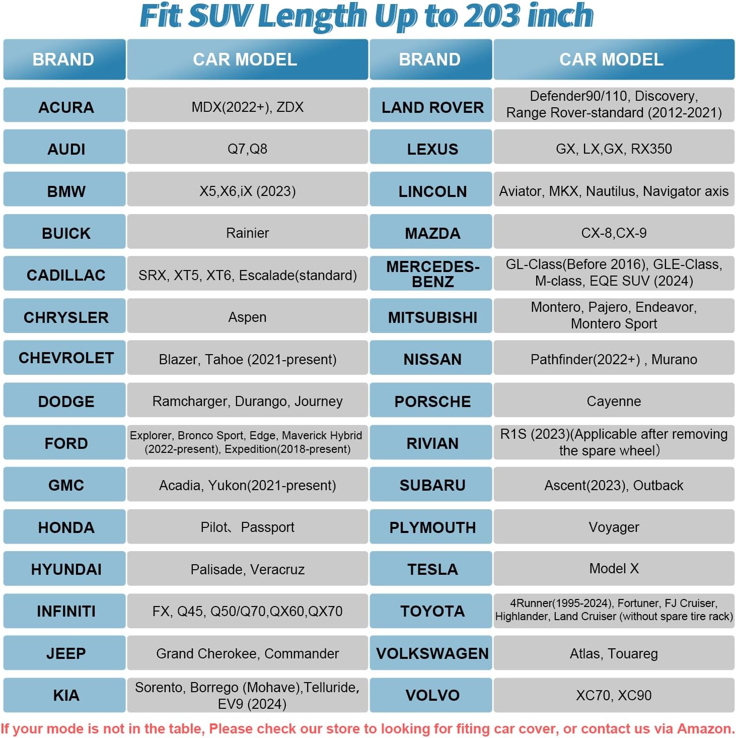 - Universal Dimension: GORDITA Car Cover SIZE: 203x78x75inches (518x200x189 cm), Fit for Most SUV cars, NOTE: Please Measure Your Car's Length before buying or contact us