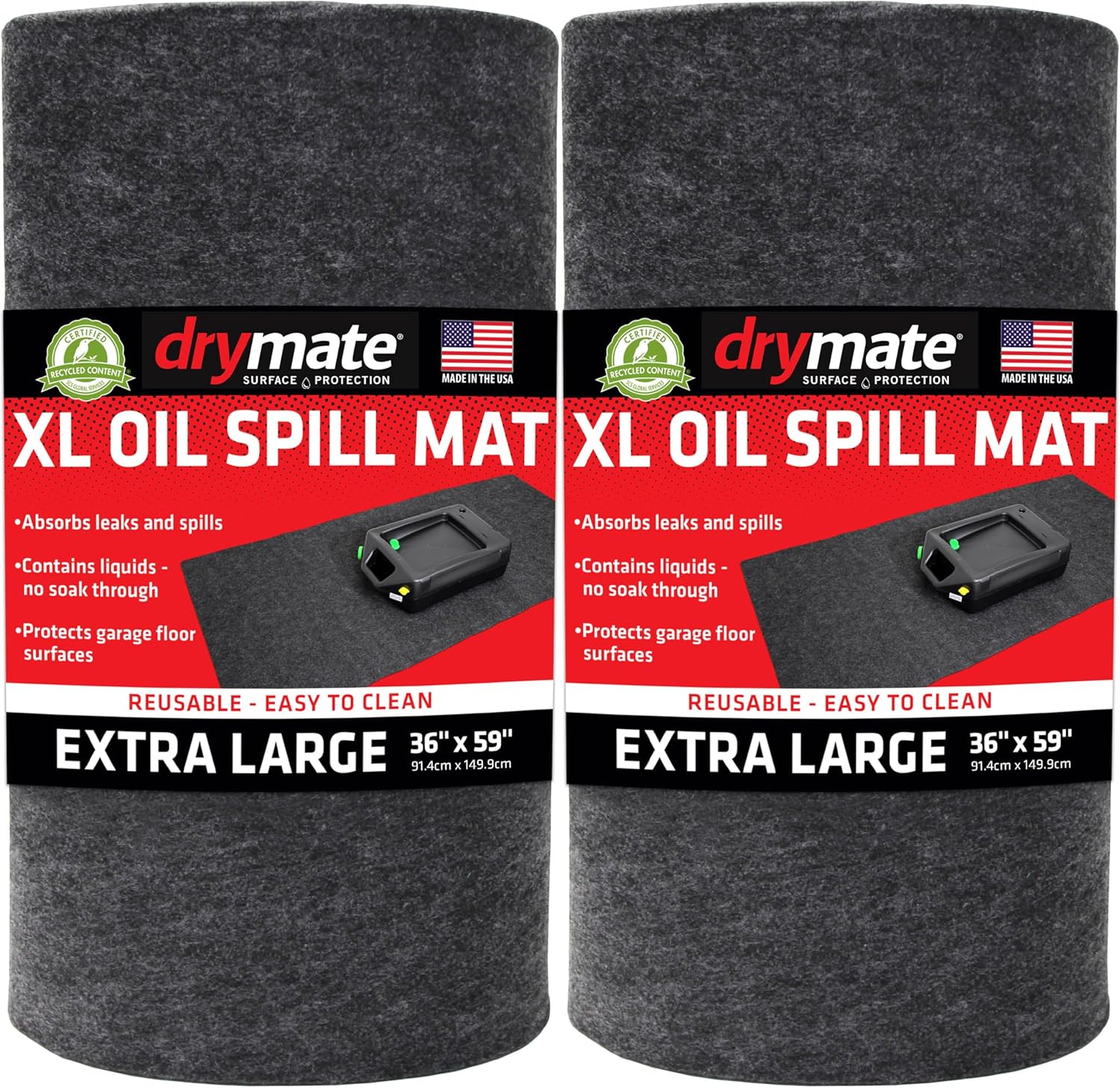 Drymate XL Oil Spill Mat (36" x 59") (2-Pack), Premium Absorbent Oil Pad, Reusable, Washable, Durable, Waterproof Backing Contains Liquids, Protects Garage Floor Surface (USA Made)