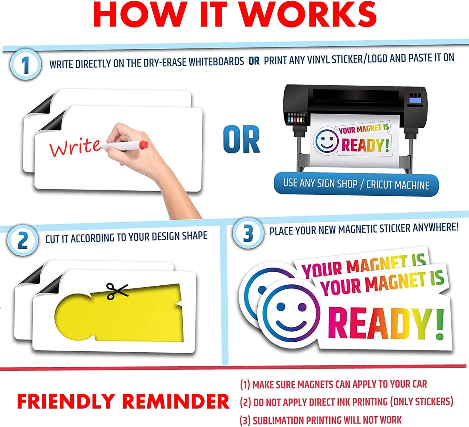 - Used as personalized magnets, customized car magnets and decals to print advertisement you want or repeated scribbling.