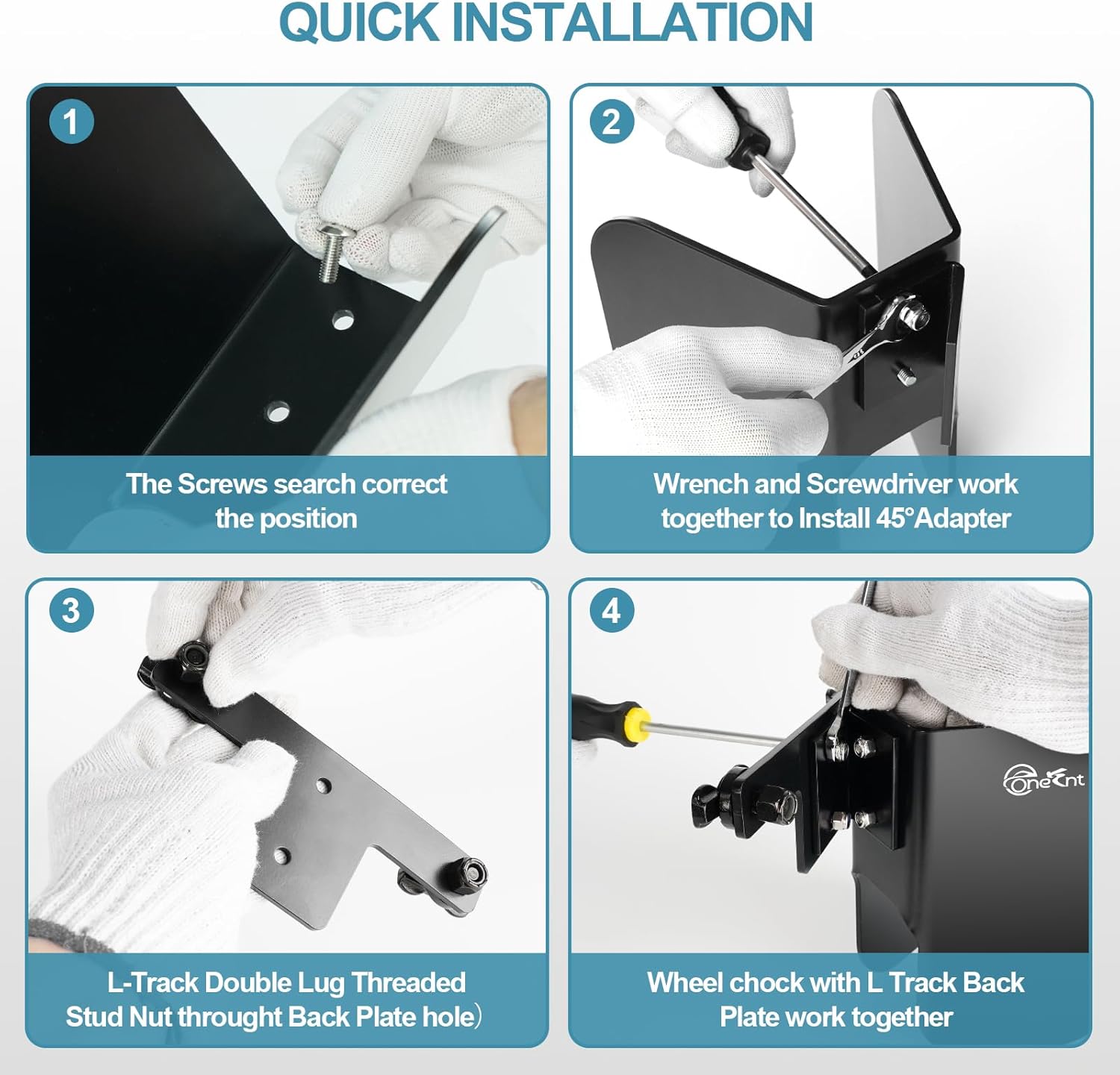 - Package Included:2 Pcs L-Track Wheel Chock, 2 Pcs 45 Angle Adapte, 4Pcs L-Track Double Lug Threaded,10 Pcs Screws and Nuts, 1 Pcs Wrench and 1 Pcs Screwdriver,1Pcs Back Pla