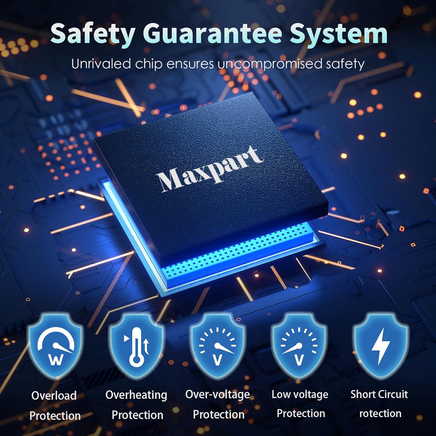- Safety Multi-Protection 1000W 12V Automobile Inverter: Cooling Fan, Smart Digital Display, and Mini Slip Fuse to protect against Over Voltage, Low Voltage, Overload, Short Circuit, and Over Heat. Made with reliable ABS crashworthiness technology for robustness, as well as good electrical insulation auto inverter