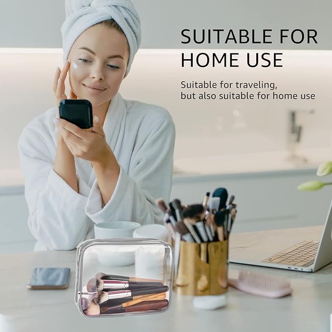 - Improved 0.6mm thickened transparent PVC material, softer and more pliable, durable and reusable; 5 PACKS 3 DIFFERENT SIZES: 1x Large clear toiletry bag (11.8" x 3.9" x 8.7"), 2x Medium clear makeup bag (9.5" x 1.9" x 7.9"), 1x Small clear cosmetic bag (7" x 1.6" x 5.5")