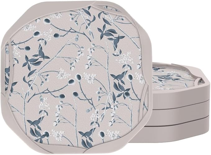 UMIRRO Absorbent Coasters for Drinks, Floral Silicone Cup Coaster with Felt Insert for Table Decor, Small Unique Birthday Gift Ideas for Coffee Lover, Men Dad Him Women Mom Her, 4", Set of 4