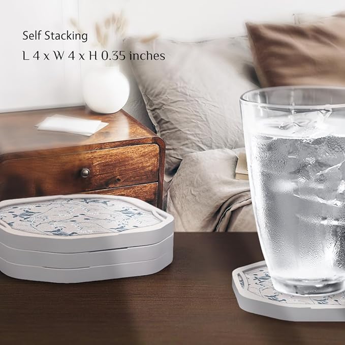 - FUNCTIONALITY - Avoid condensation rings, drips and puddles on tabletop; Prevent sticking, sliding, skidding and leaving marks or stains; Reduce excess noise for a quieter; Non-breakable, reusable, and washable; Protect counters, wooden desks, bedside furniture, nightstands in your apartment or house from scratches; Slip resistant on various surfaces like countertop or desktop which made of marble, stone, slate, ceramic, leather, agate, sandstone, geode, rubber, plastic, cork, or bamboo