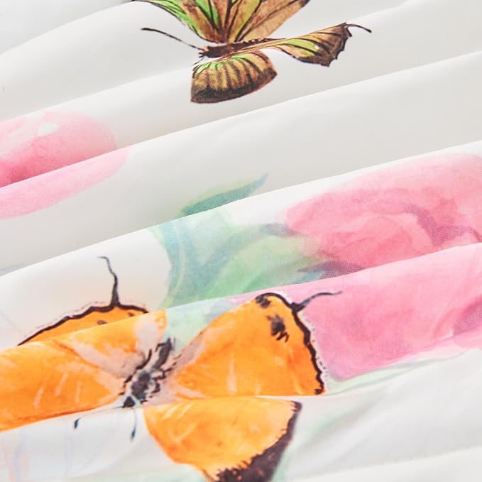 7 Piece Cat Comforter Set Full Size,Kids Girls Bed in A Bag Cute Kitty Butterfly and Flowers Comforter Set for All Season(1 Comforter,2 Pillow Shams,1 Flat Sheet,1 Fitted Sheet,2 Pillowcases)
