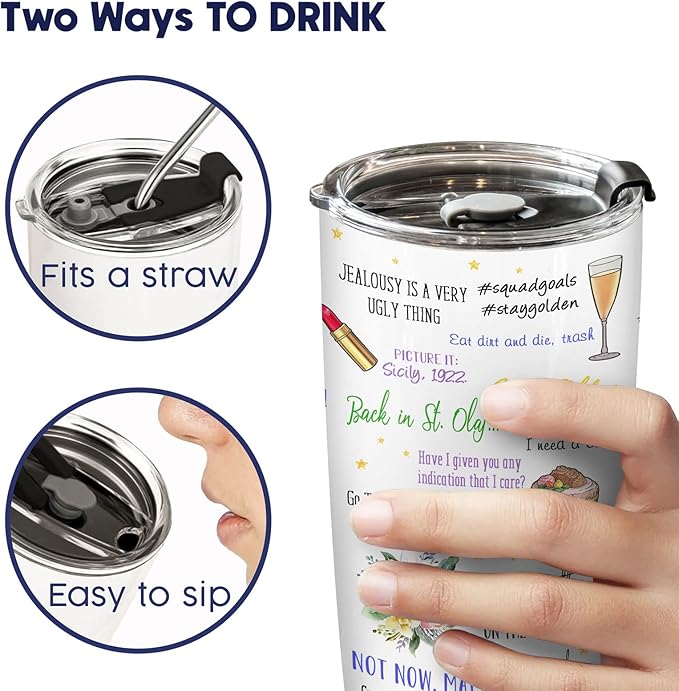 34HD Valentine Friend Gifts, Golden Movie Tumblers with Lid 20 oz Stainless Steel, Best Friend Travel Cup Mug, Friend Decor, Birthday Gifts for Bestie Women Girls