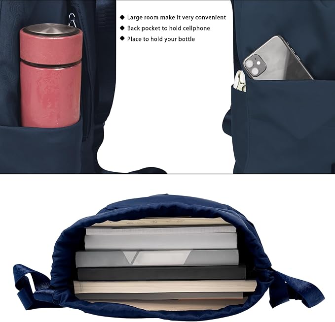 • LARGE CAPACITY - The enormous main pocket with drawstring opening of this bag easy access to your personal items, such as clothes, water bottle, gym gear and traveling accessories etc. Front zipper bag and other small pockets give you perfect classification for small items like keys, wallet or phone.