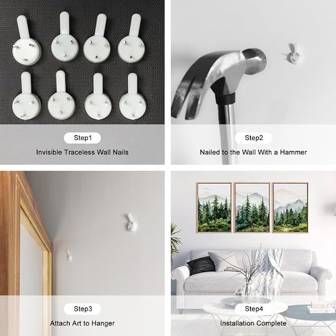 - 【Easy To Hang】This mountain range artwork set of 16"x24" is easy to hang. Begin by determining the desired location, ensuring it is level and aligned with your preferences. Then, using the included non-trace nails, securely attach the frame to the wall.
