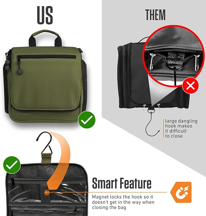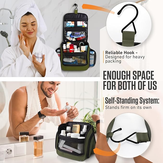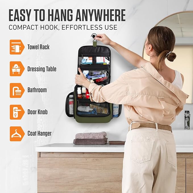 - HOOK & ORGANIZATION – 18 compartments and a versatile hook let you hang it, save space, or stand it upright when needed. Perfect for travel, camping, or at home.
