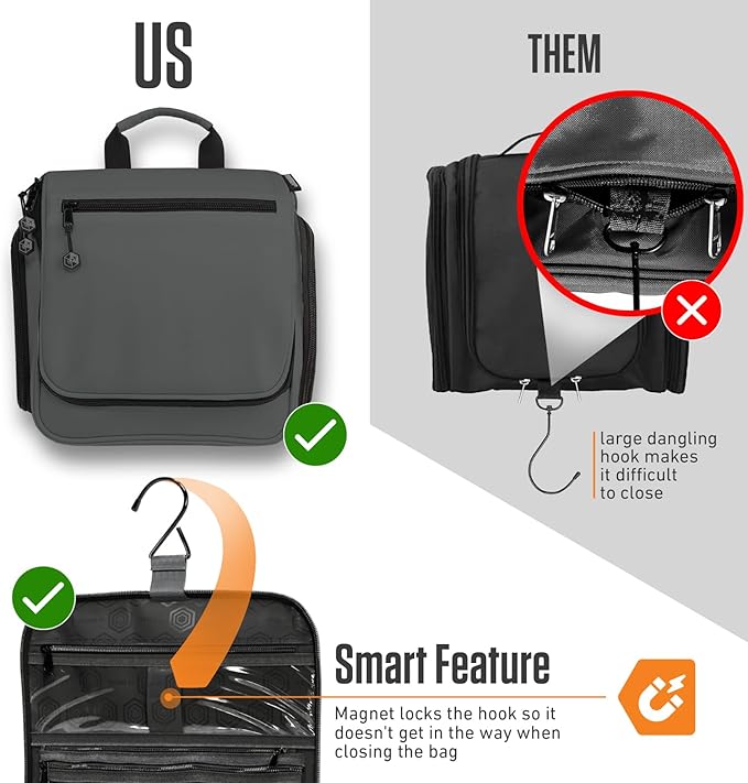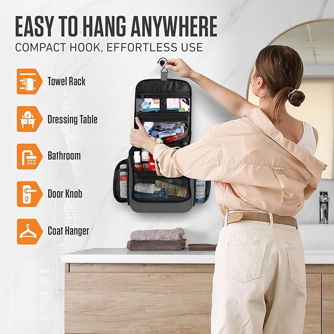 - HOOK & ORGANIZATION – 18 compartments and a versatile hook let you hang it, save space, or stand it upright when needed. Perfect for travel, camping, or at home.