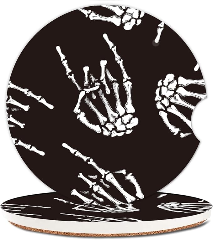 Absorbent Car Cupholder Coaster 2 Pack, Cute Car Coasters with a Finger Notch for Women & Men,2.56" Ceramic Stone & Non-Scratch Cork Base Drink Coasters, Cute Auto Accessories Gifts