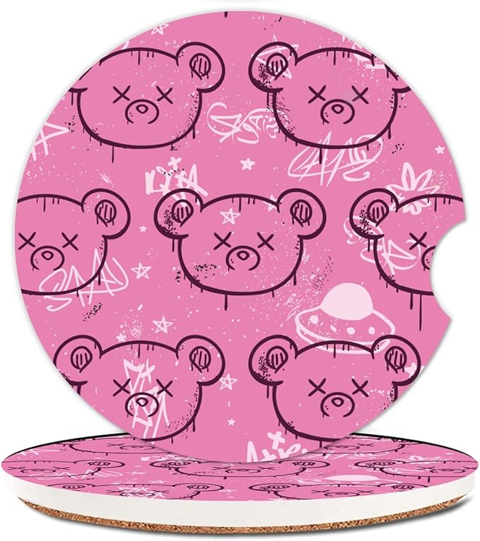 Absorbent Car Cupholder Coaster 2 Pack, Cute Car Coasters with a Finger Notch for Women & Men,2.56" Ceramic Stone & Non-Scratch Cork Base Drink Coasters, Cute Auto Accessories Gifts
