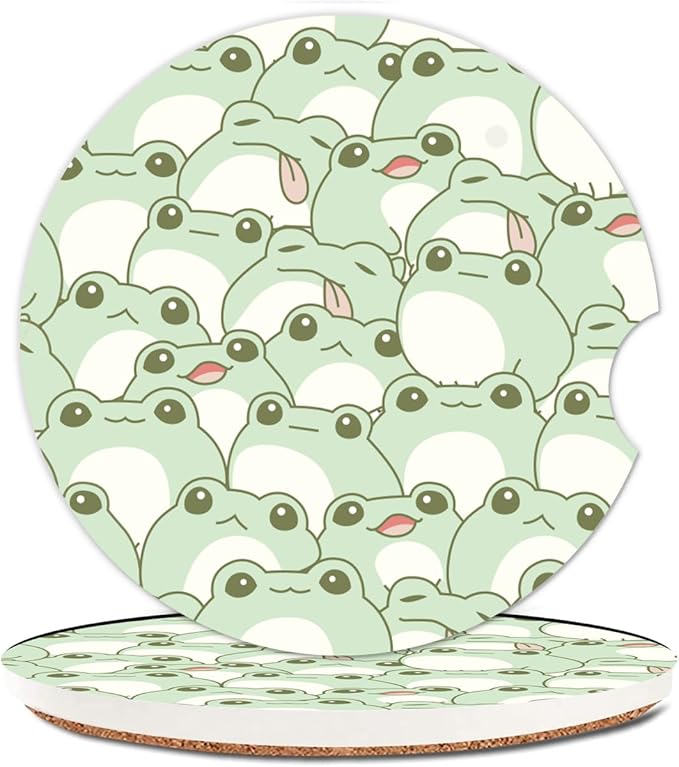 Absorbent Car Cupholder Coaster 2 Pack, Cute Car Coasters with a Finger Notch for Women & Men,2.56" Ceramic Stone & Non-Scratch Cork Base Drink Coasters, Cute Auto Accessories Gifts