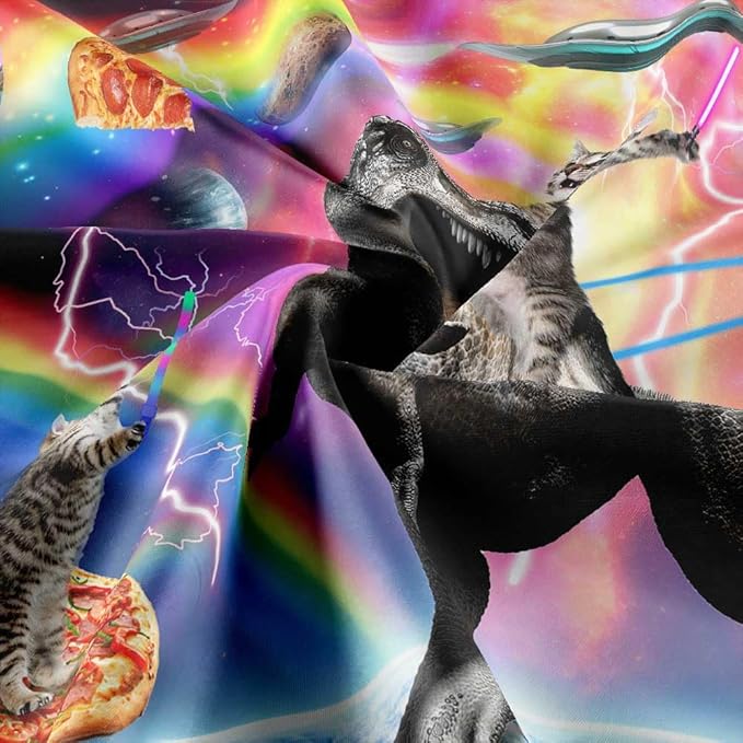 Torich Funny Cat Shower Curtain for Bathroom, Kids Cool Cat Riding Cute Dinosaur on Outer Space Universe Fantasy Galaxy Hilarious Shower Curtain Set, Anime Fabric Bathtub Decor Hooks, 36X72IN