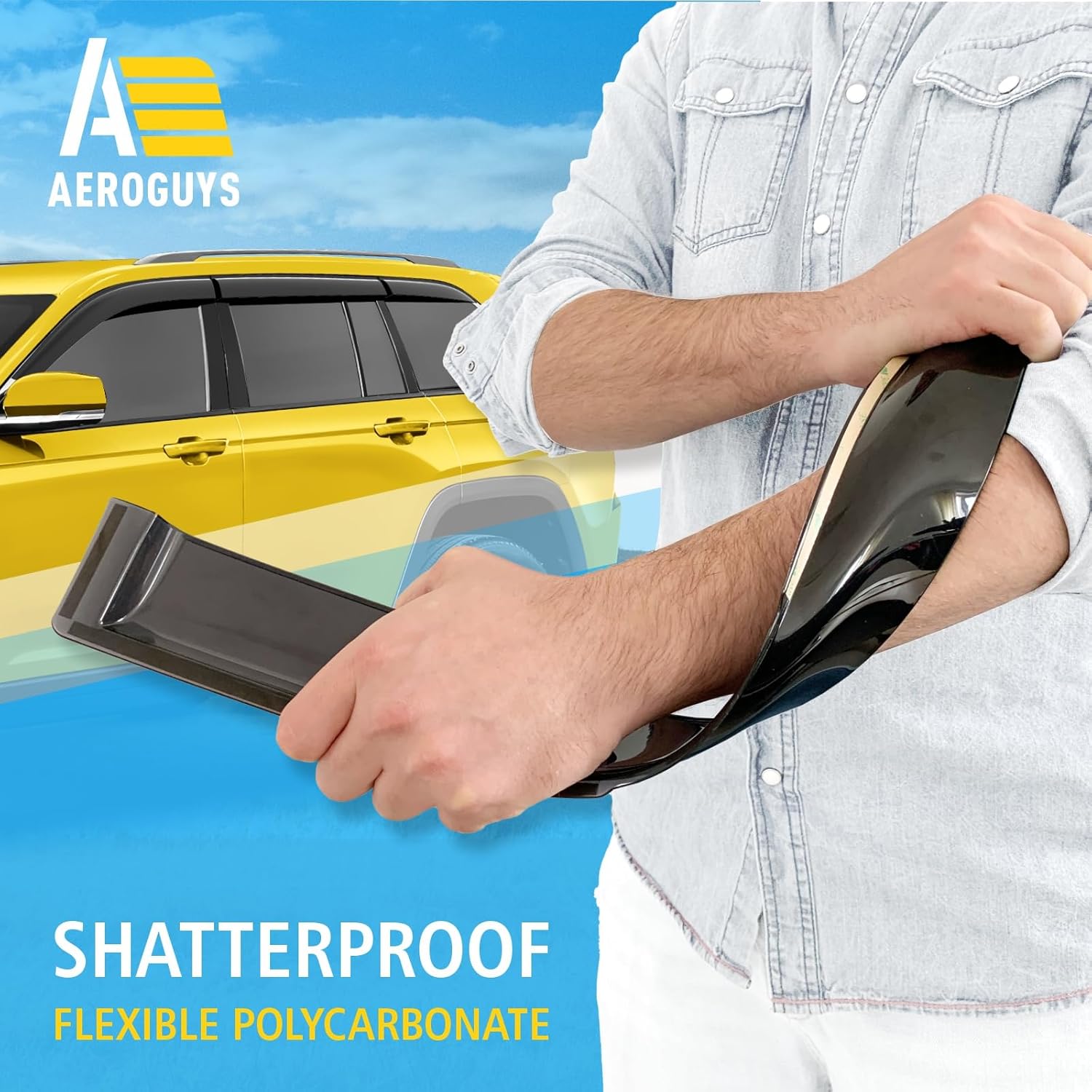 - Incredibly Durable AEROGUYS Auto Window Deflectors – They are made with strong and tough polycarbonate which is clear and scratch-resistant. They also provide UV protection making your ride more comfortable under all weather conditions.