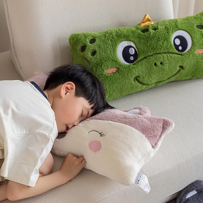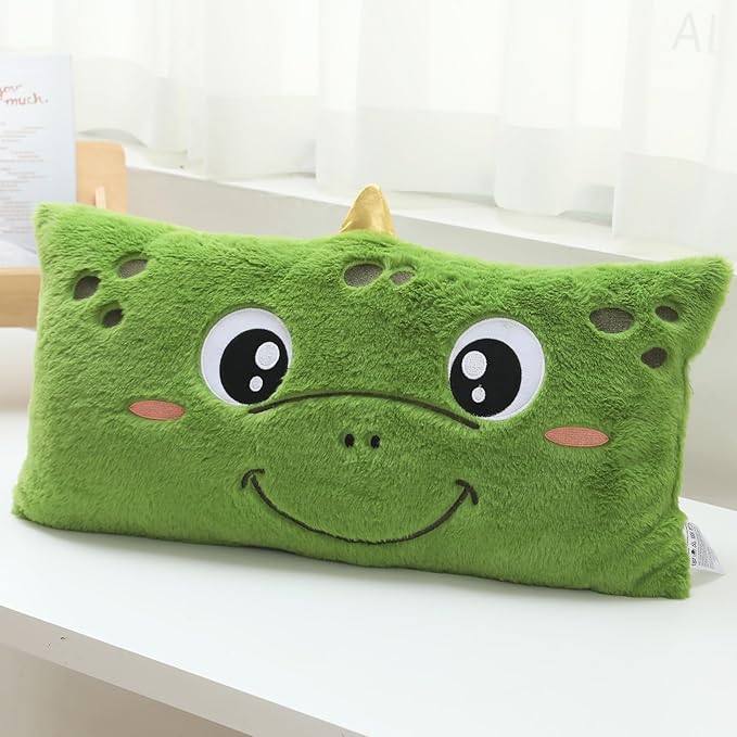 Stuffed Animal Lumbar Pillow, Super Soft Plush Cuddle Throw Pillow for Kids, Cute Dinosaur Shaped Pillow, 12 x 24 Inches, Green