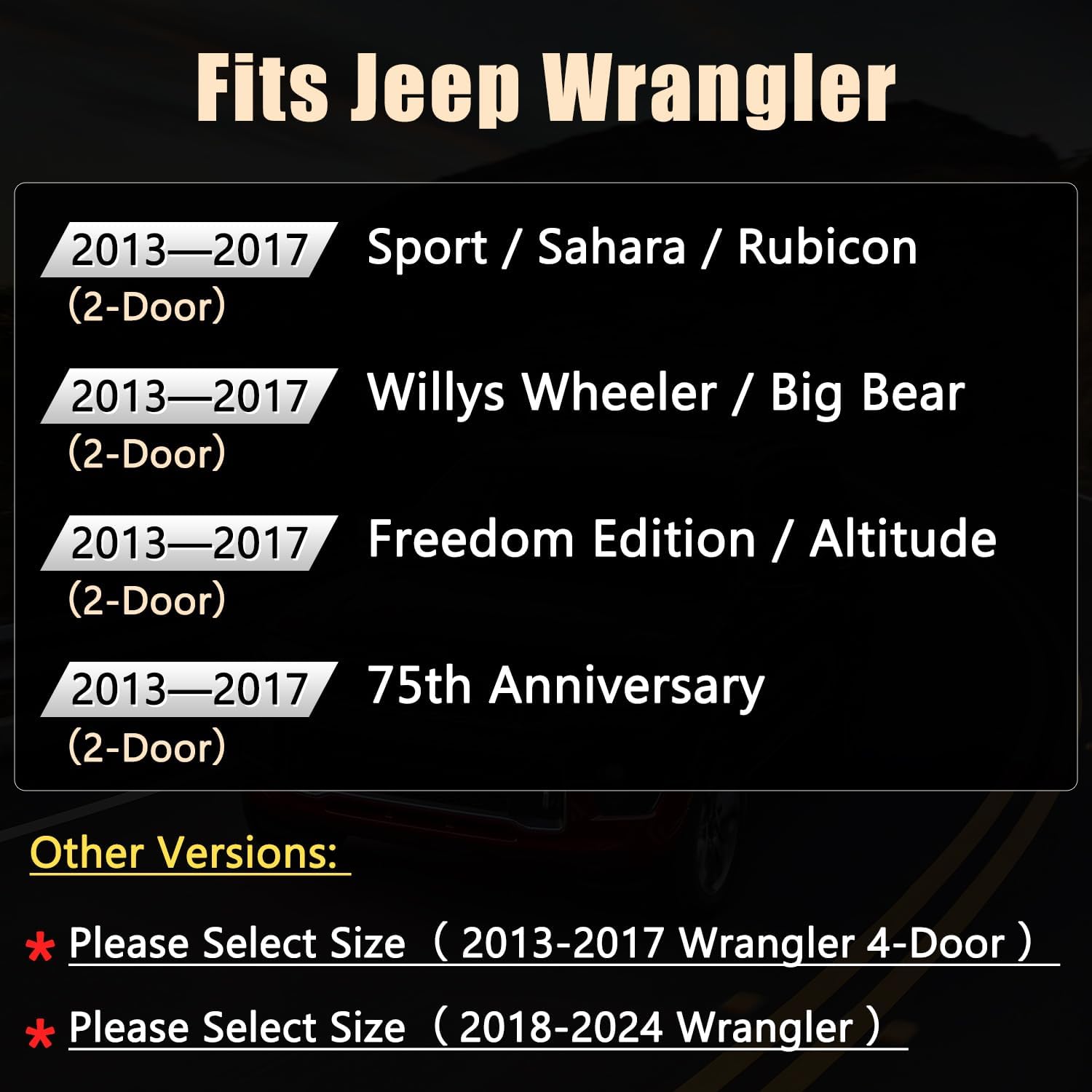 - 【CUSTOM FIT】 - A full set of seat covers customized according to the original car seat size 1:1, which will fit Wrangler JK 2-Door 2013 2014 2015 2016 2017 like a glove.