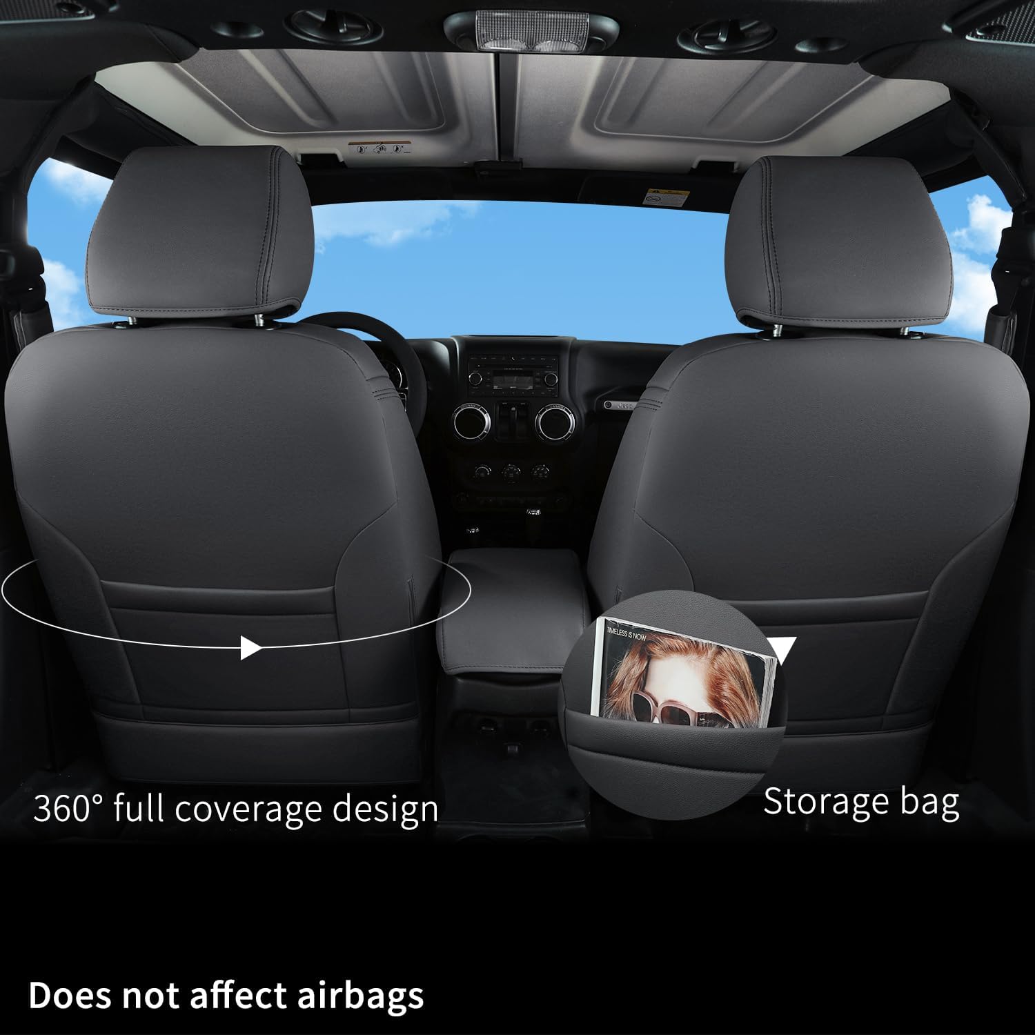 - 【CUSTOM FIT】 - A full set of seat covers customized according to the original car seat size 1:1, which will fit Wrangler JK 2-Door 2013 2014 2015 2016 2017 like a glove.