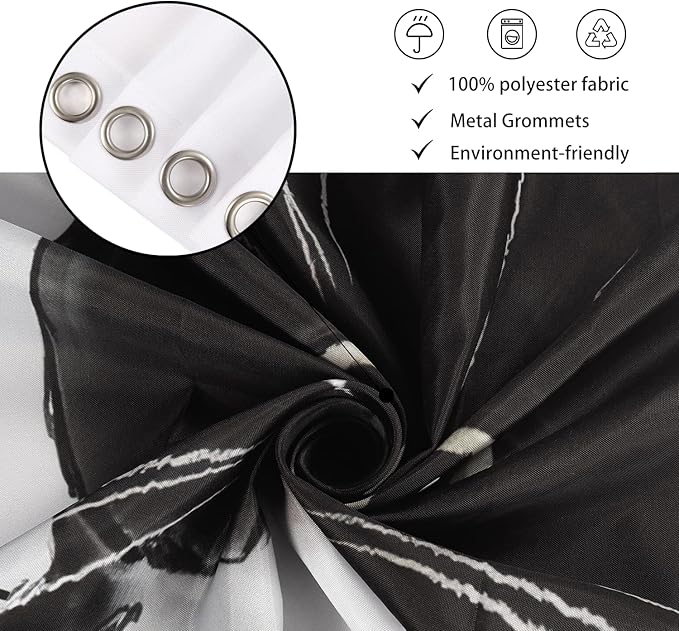 - [EASY USE & CARE] Our black cat shower curtain with rust-resistant metal grommets on the top, with 12 plastic hooks, use the C-hooks to quickly hang the shower curtain on the pole. You can machine or hand wash to keep it clean.