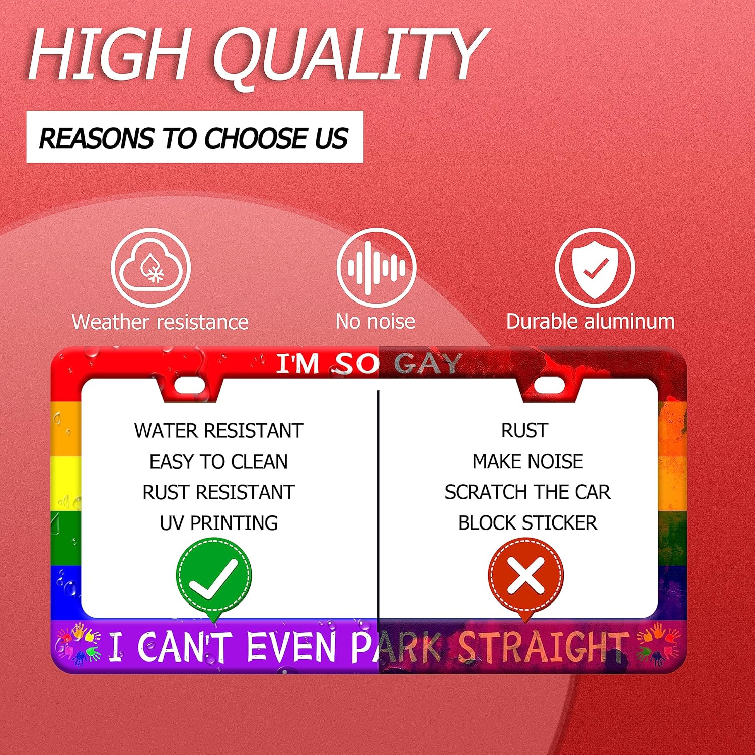 Gay License Plate Frame I'm so Gay I Can't Even Park Straight LGBT Funny License Plate Stainless Steel Parts with Screws Size 12.3" x 6.3" Men Women