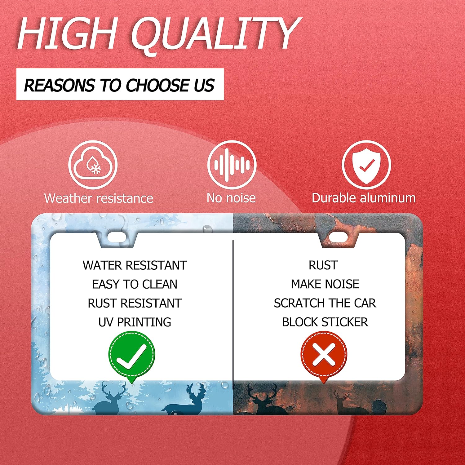 - Design:Use Advanced digital printing Protects license plate frames from Whether it's a car wash, heavy rain or hot weather, it still looks brand new,Let your car still be unique and stylish while driving on the road