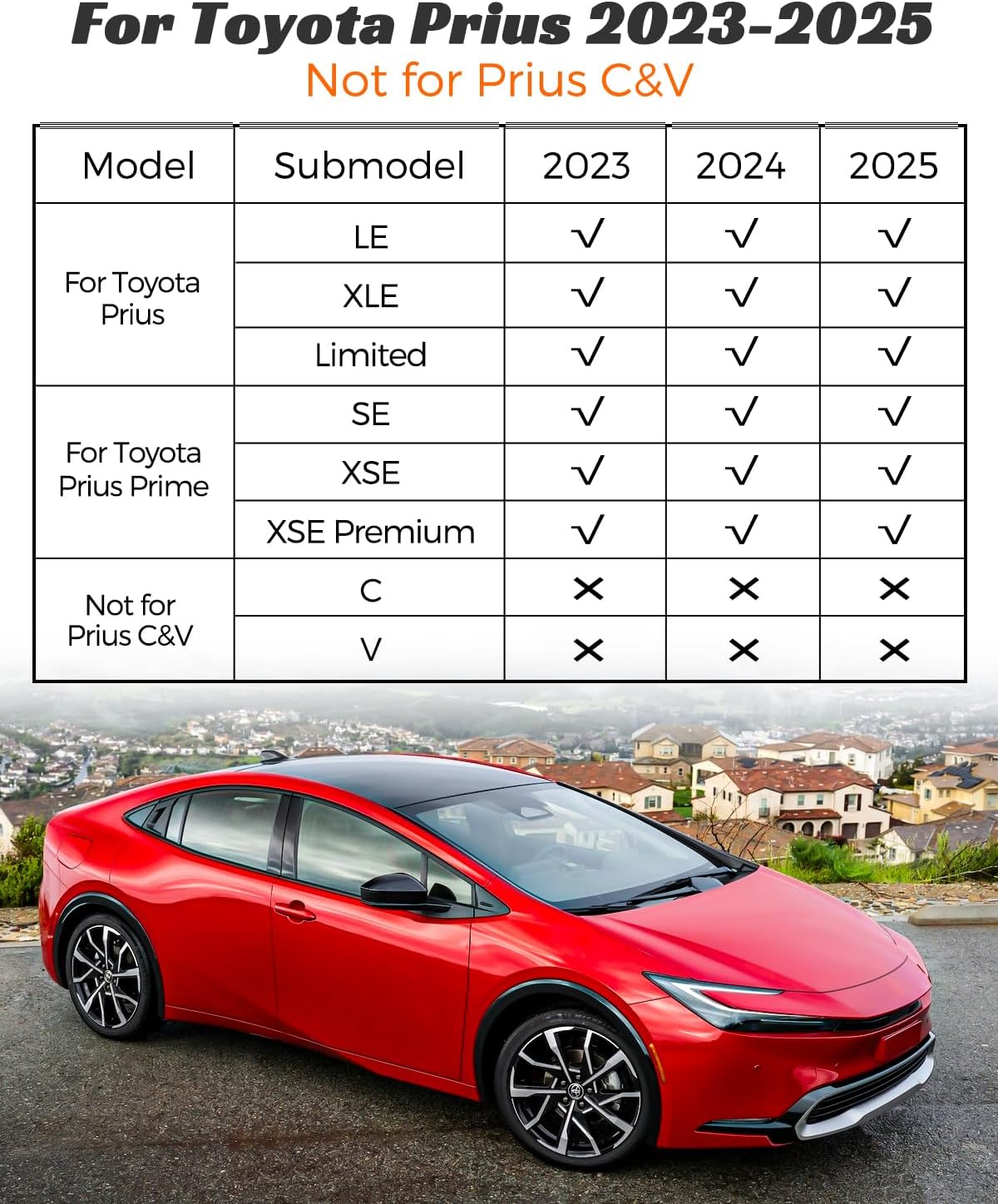 - Custom Fit: Designed for Toyota Prius and Prius Prime 2023-2025 (not compatible for Prius C & V); enjoy a seamless fit for the 1st 2nd row, plus the cargo area