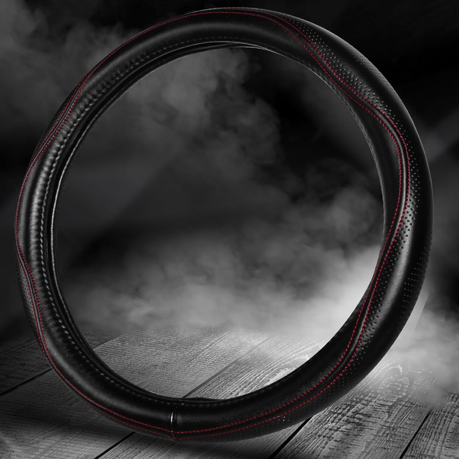 - TOP QUALITY : This Heavy Duty Black and Red steering wheel cover is made of cowhide, natural, skidproof, stable. The entire steering wheel has only one interface!