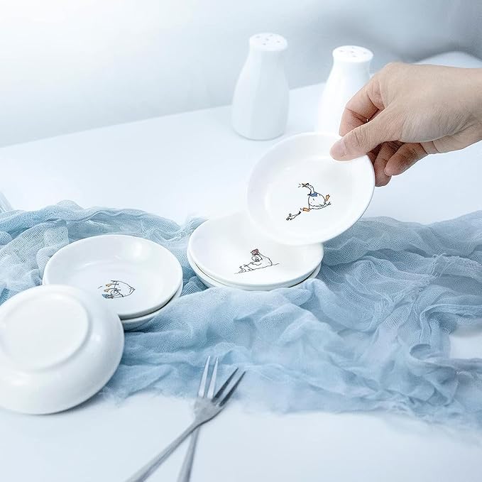 Super Cute Cartoon Animal Pattern Ceramic Sauce/Seasoning/Sushi Soy Dipping Bowl/Appetizer Plates/ Serving Dish Set (6)-Goose