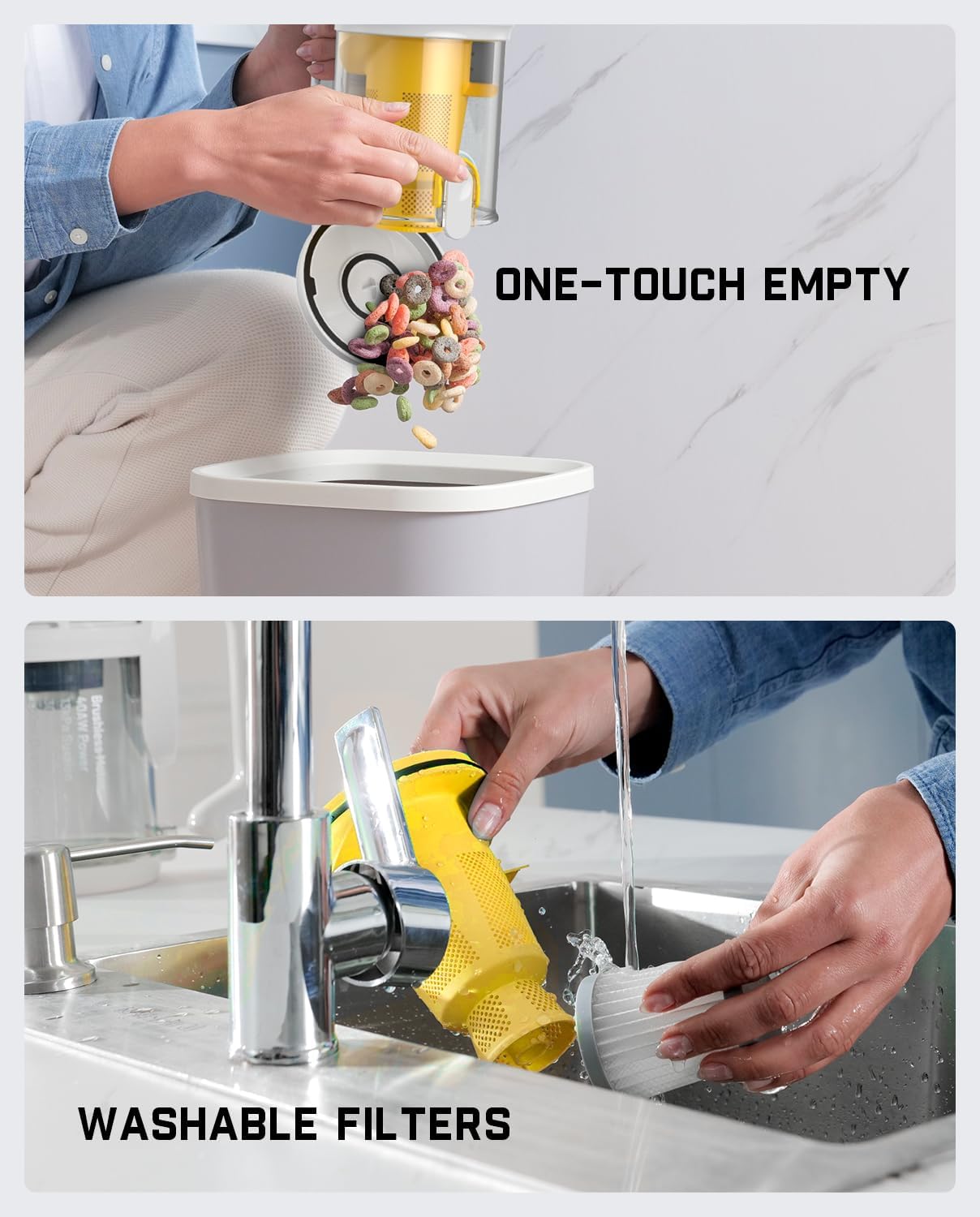 - High Performance & Two Modes: With 80,000 RPM brushless motor and Innovative cyclonic air system, V9 hand vacuum effectively separates dust and larger trash, providing continuously stable suction, and extending filter and motor life
