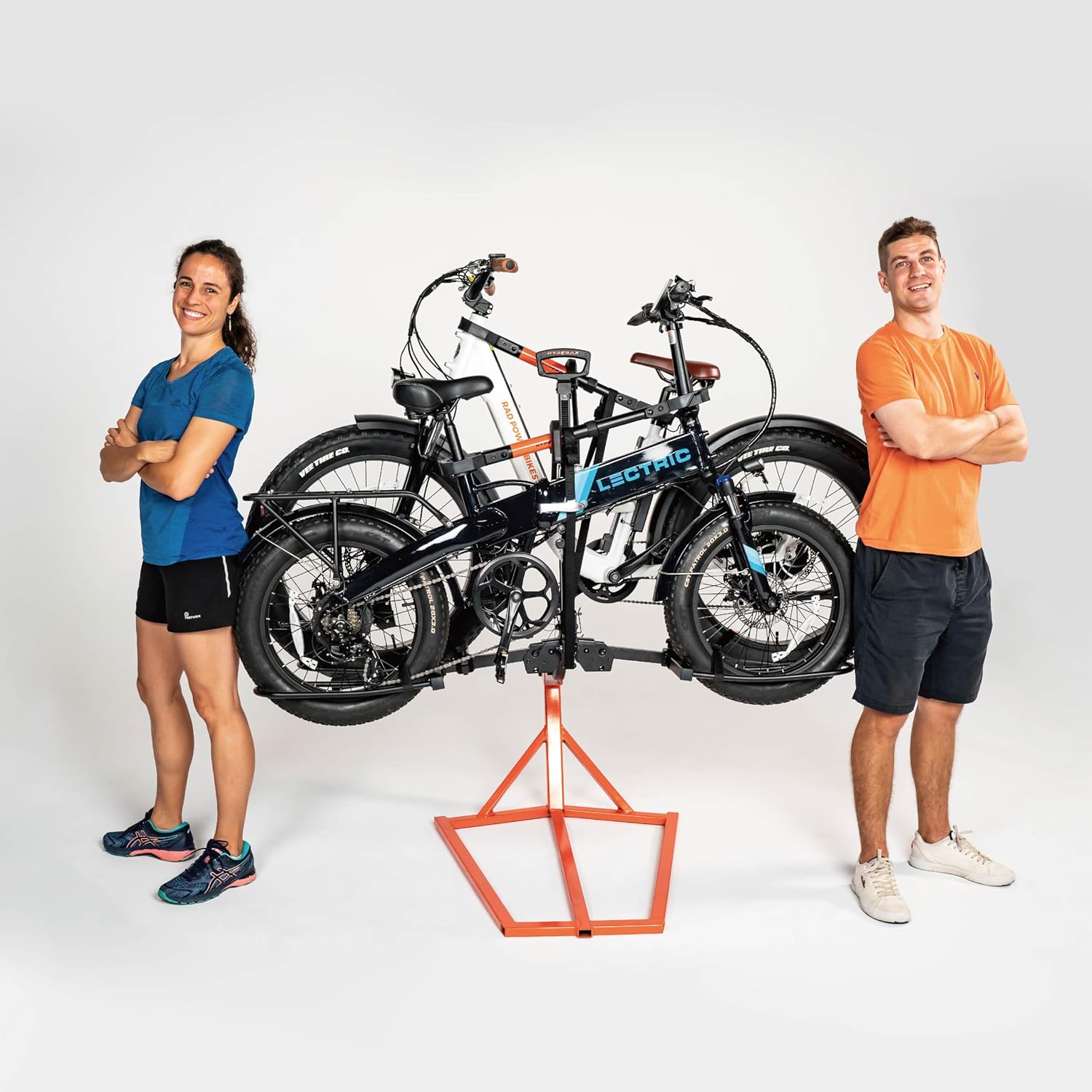 HYPERAX Volt 2_1.25" -E Bike Hitch Mounted Platform Style 2 Bikes Carrier for Car, SUV, Trucks, Sedan, Tilting e-Bike Rack for Hitch Fits Up to 2 X 70 lbs Bike with Up to 5" TIRE - NO RV USE!
