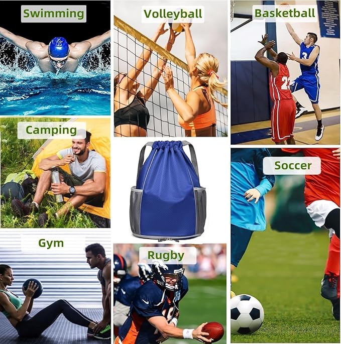 - 【Waterproof & Lightweight Drawstring Backpack】: Our drawstring sports backpack is made of high-quality oxford and nylon materials which are lightweight and sturdy, water-resistant and strong enough to resist rain, dirt, dust, can withstand the challenges of various outdoor sports. With drawstring design is extremely convenient to use, just pull the drawstrings to open and close. This convenience factor is attractive for soccer players who need to quickly access gear.