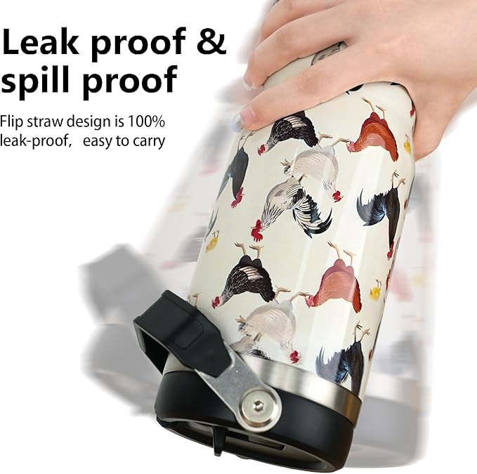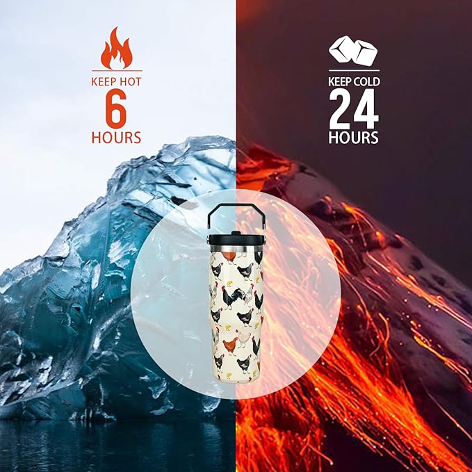 30oz Chicken Tumbler with Handle and Straw, Stainless Steel Vacuum Insulated Flip Straw 30 oz Coffee Rooster Tumbler, Spill Proof Travel Mug, Chicken Decor Gifts for Women