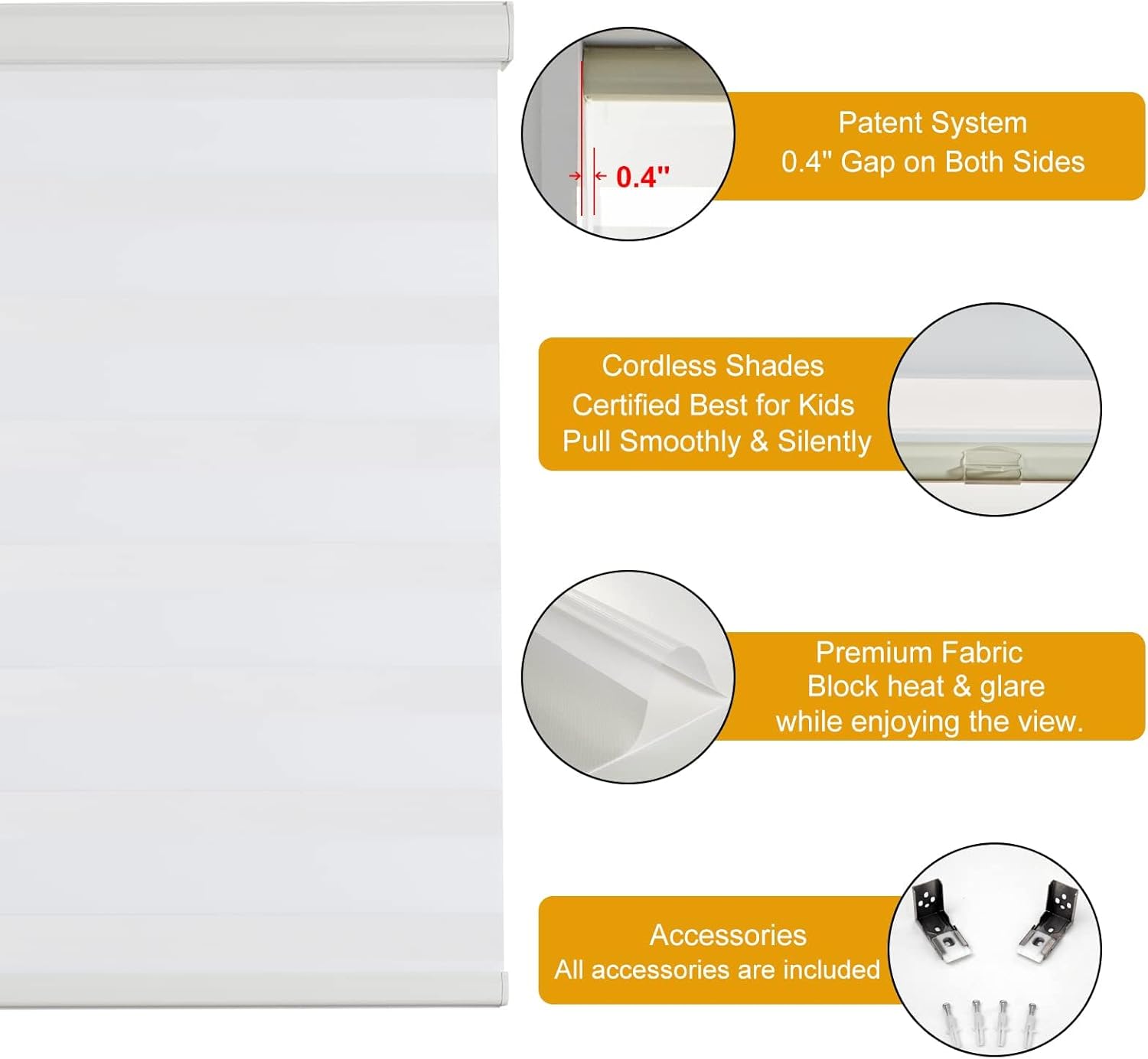 Persilux Zebra Blinds Cordless, Zebra Roller Shades for Windows (34.5" W x 64" H, Cream) Light Filtering Day and Night Window Drapes Sheer Shades for Home, Bedroom and Sliding Door Easy to Install
