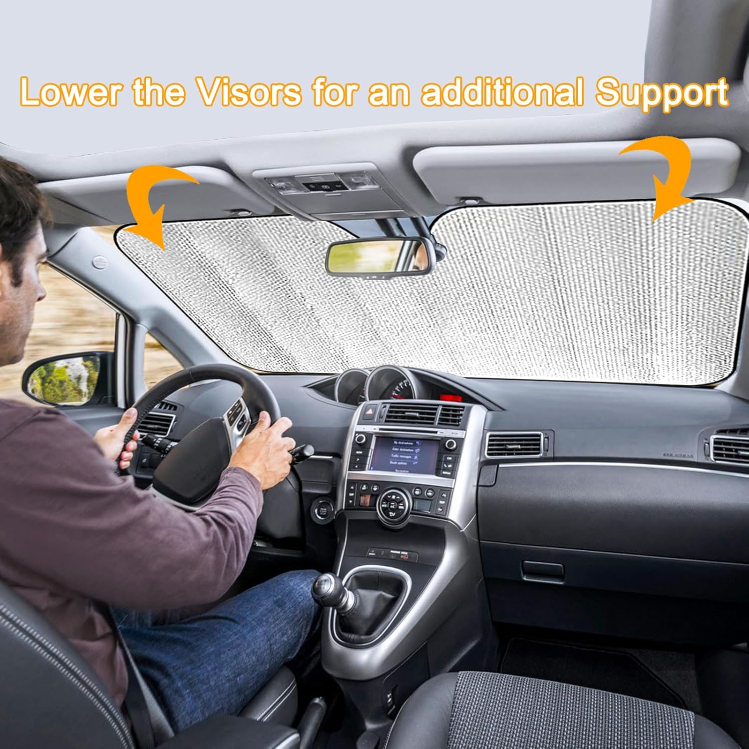 - APPLICATION SCENARIO: You can easily open and fold it when the car is parked outdoors for a long time, such as fishing, picnic, hiking, camping, outdoor activities and so on. Now you can design new ideas for the car windshield visor and make it a perfect gift for Christmas, Halloween, Father's Day, Memorial Day and other holidays.