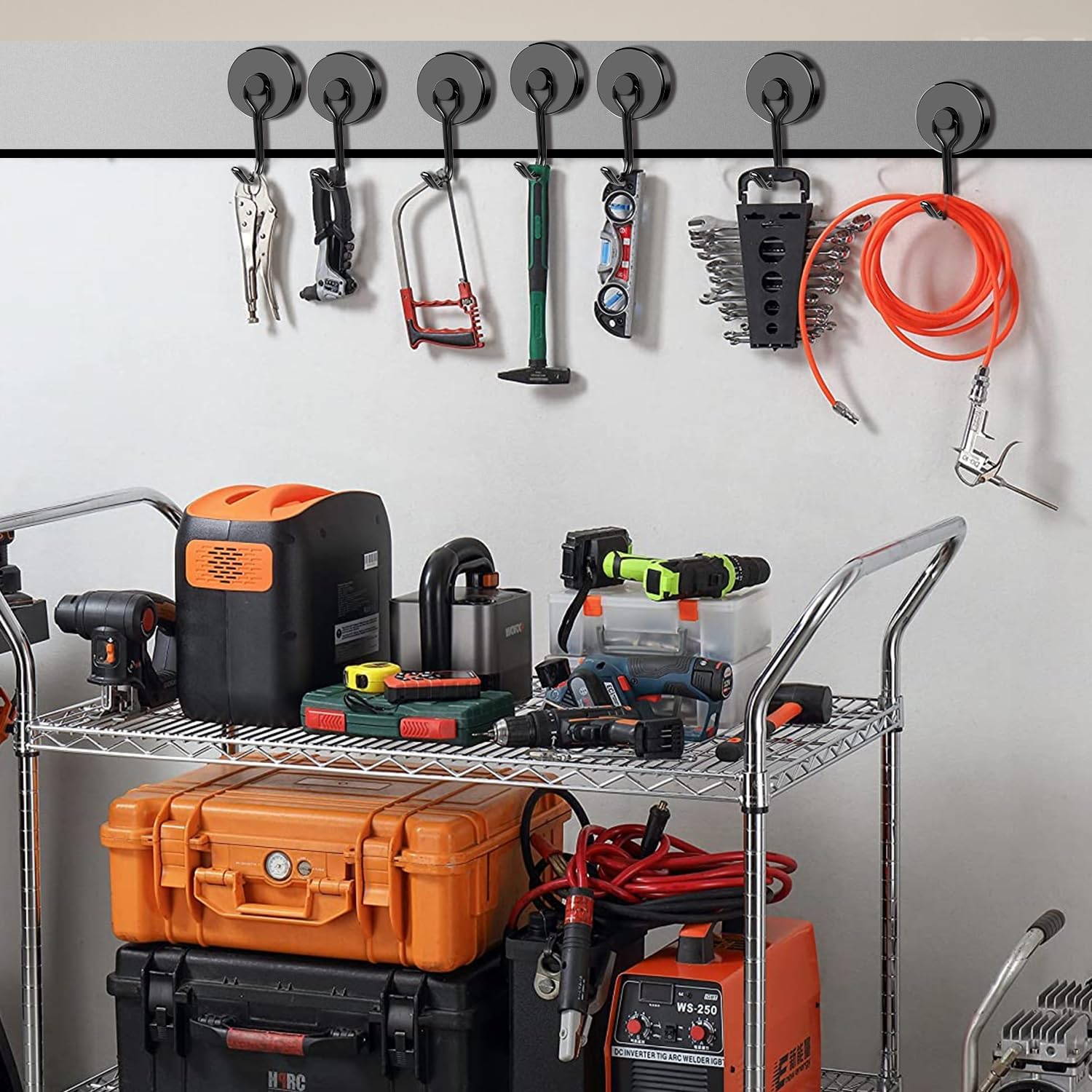 - 【Swivel Magnetic Hooks Set】The package contains 8Pcs black magnetic hooks, each diameter is 1.26inch/32mm, Magnetic hooks 110LBS Capacity is based on horizontal application,and reduced by 2/3 if used vertically