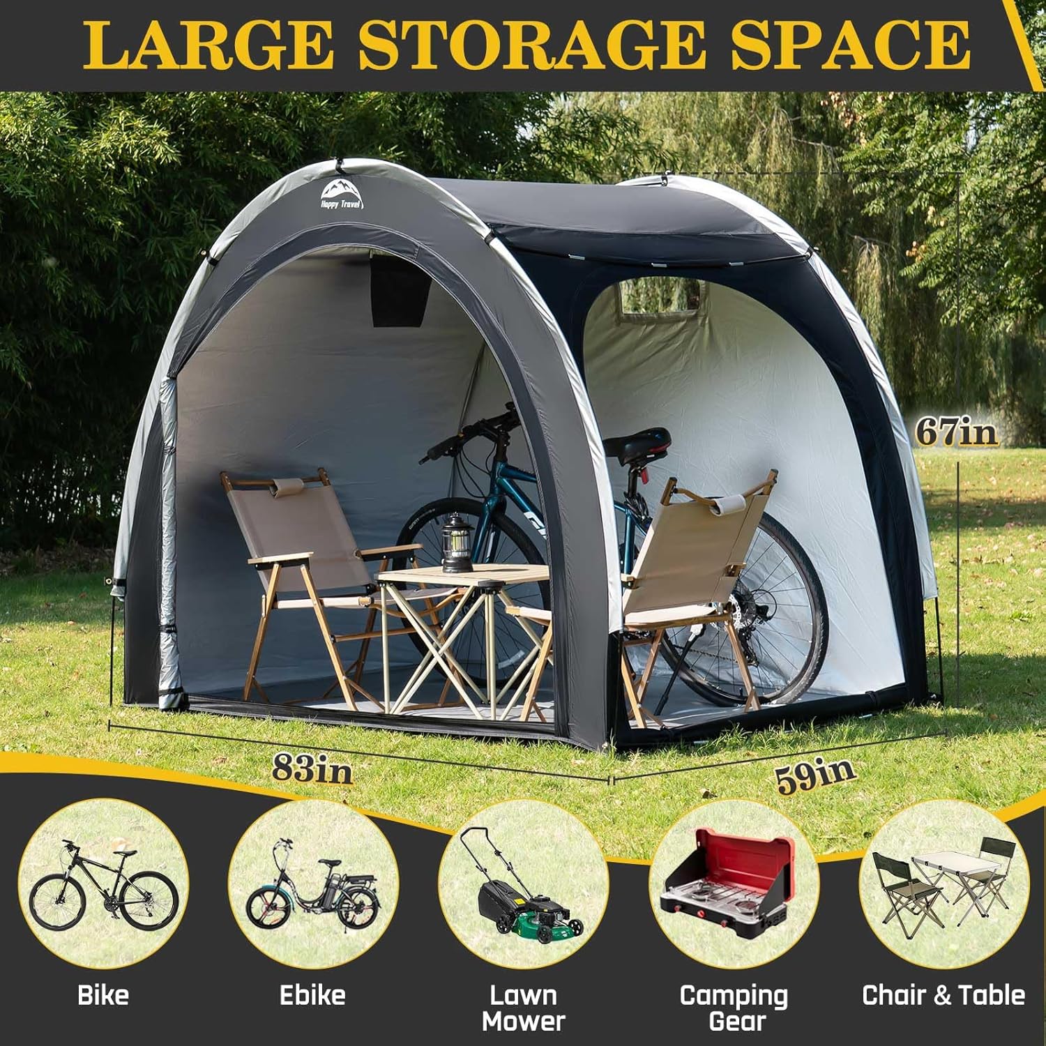 Happy Travel Bike Storage Shed Tent,Outdoor Portable Bicycle Storage Sheds with 210D Oxford Fabric PU4000 Waterproof for 2/3/4/6/8 Bikes,Bike Covers Shelter for Motorcycle,Garden Tools,Toys,Lawn Mower
